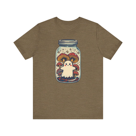 Whimsical Ghostly Tee, Halloween Shirt, Cute Short Sleeve Top, Mushroom Art Tee, Fun Unisex T-Shirt