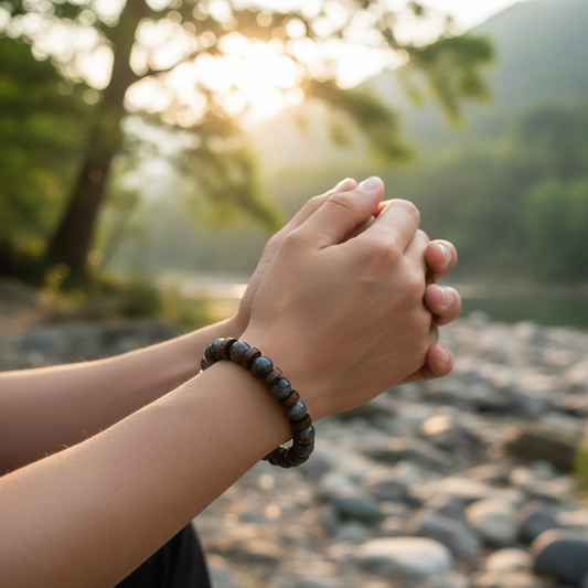 Armband Grau Holz kaufen | Herren Steinperlen Naturschmuck