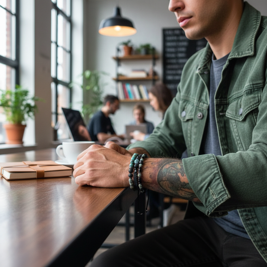 Armband Set Türkis Schwarz kaufen | 3er Herren Perlenarmband