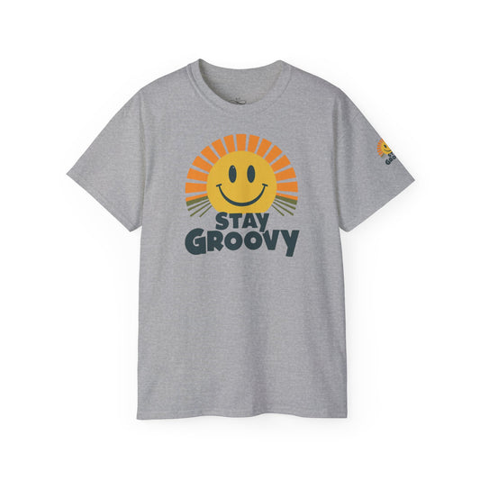 Stay Groovy Unisex Cotton Tee, Retro Graphic Shirt, Smile T-Shirt, Gift for Friends, Feel Good Apparel, Summer Vibes Top