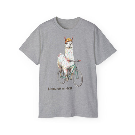 Llama on Wheels T-Shirt, Fun Graphic Tee for Animal Lovers, Summer Casual Wear, Perfect Gift for Birthdays and Holidays