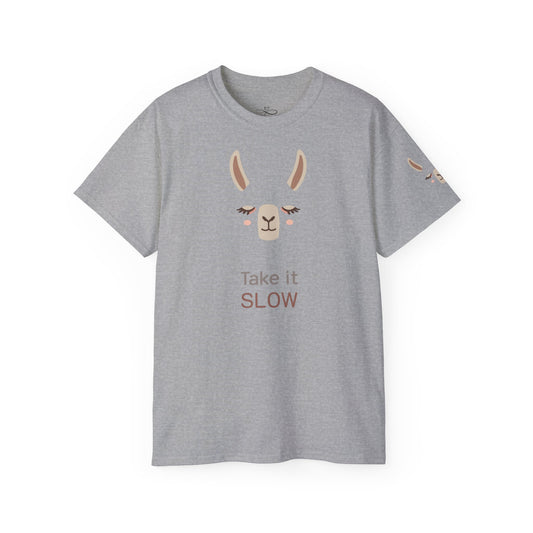 Take It Slow Llama Tee, Cute Motivational T-Shirt, Funny Gift, Casual Wear, Animal Lover Shirt, Perfect for Relaxation