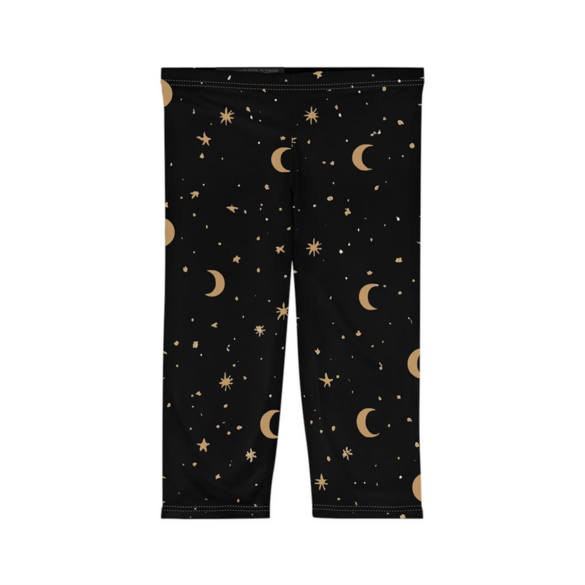Celestial Women's Capri Leggings - Stars & Moon Pattern