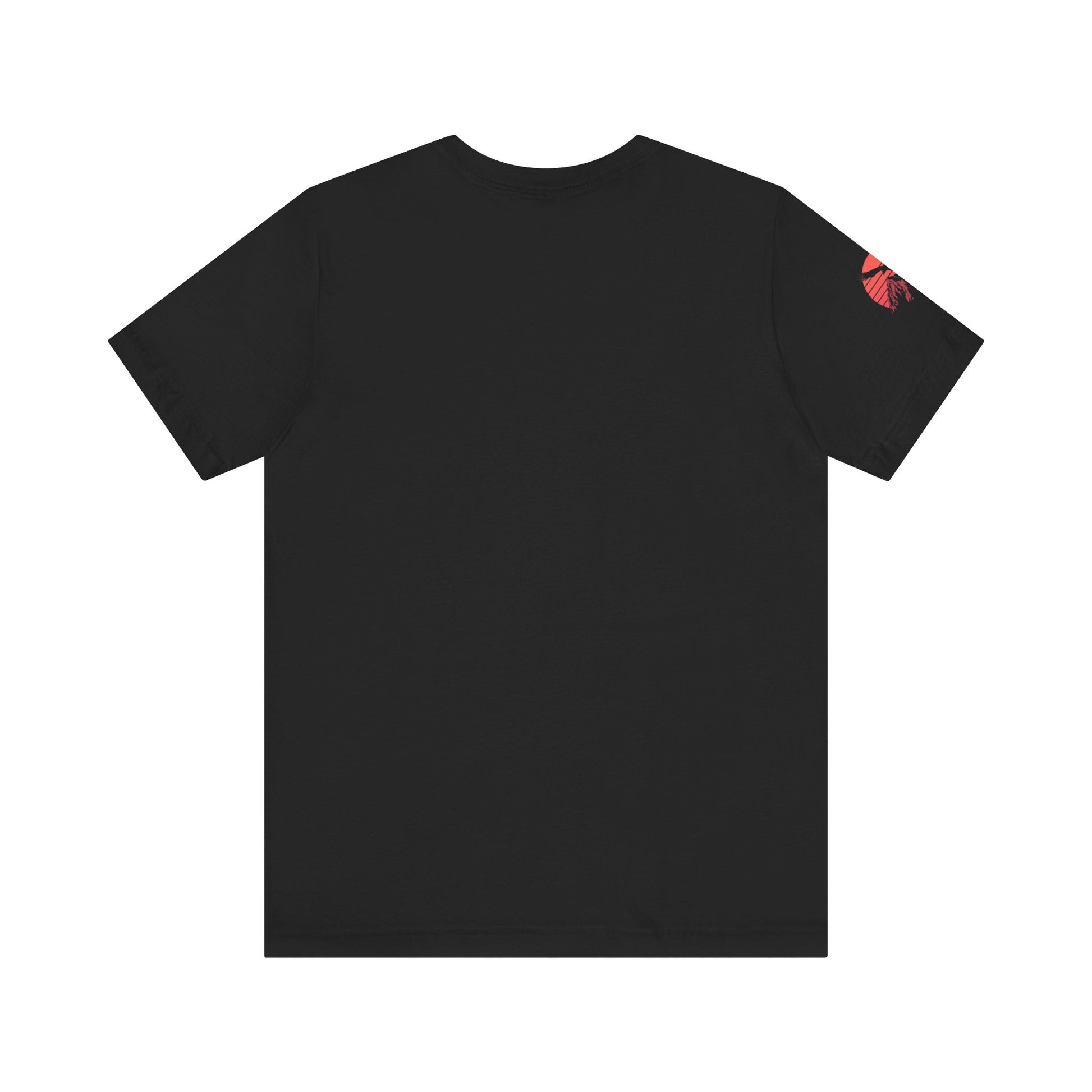 Das tiefschwarze Shirt mit leuchtend roter Sonne im Hintergrund verleiht jedem Look Charakter.