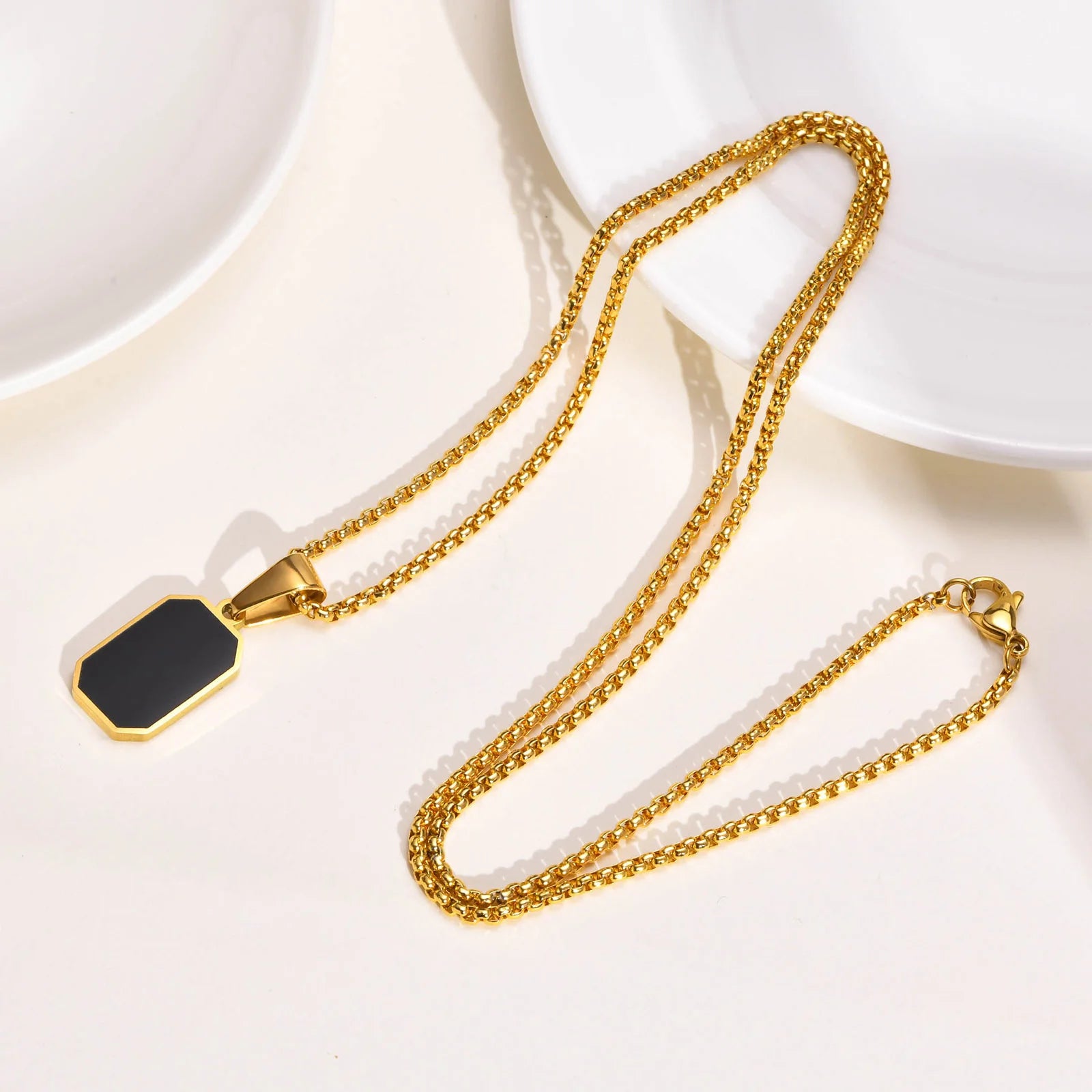 Herren Halskette Edelstahl – Rechteckiger Anhänger Schwarz