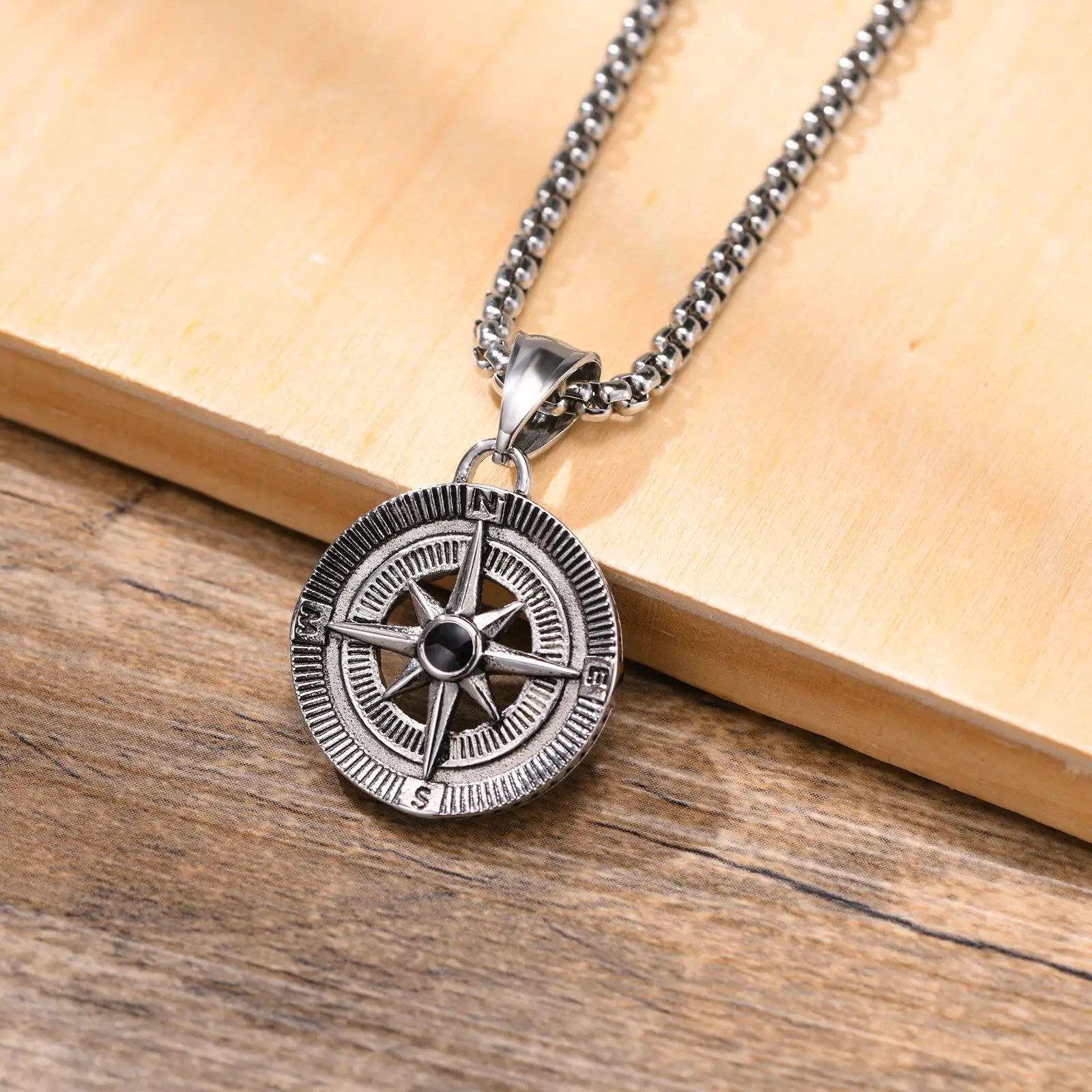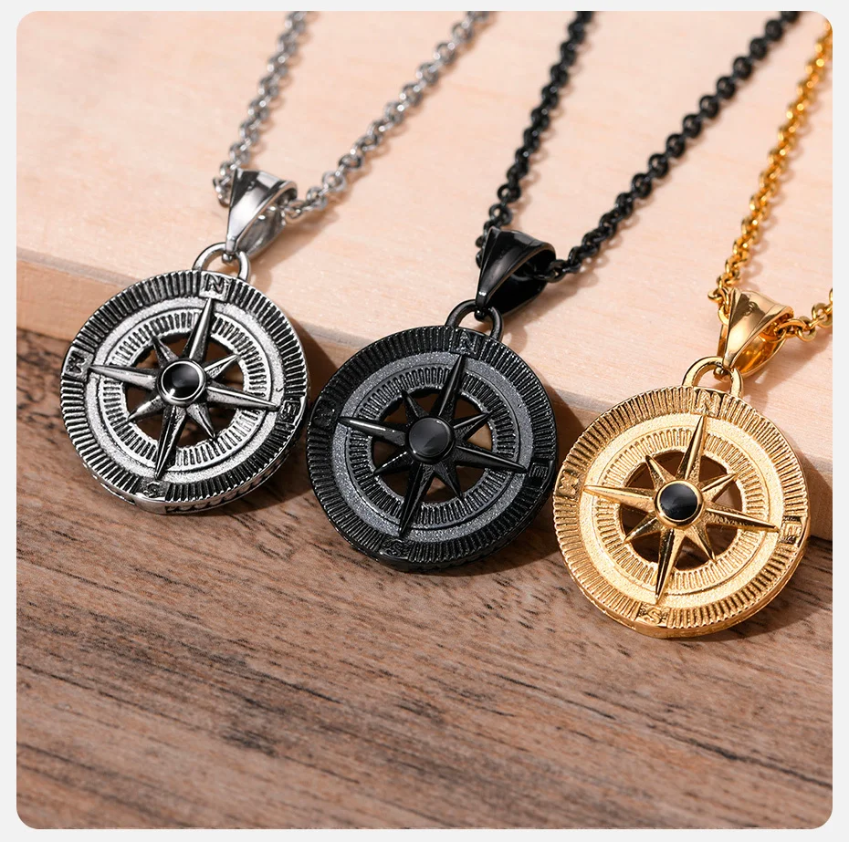 Herren Kompass Kette Edelstahl – Vintage Viking Design