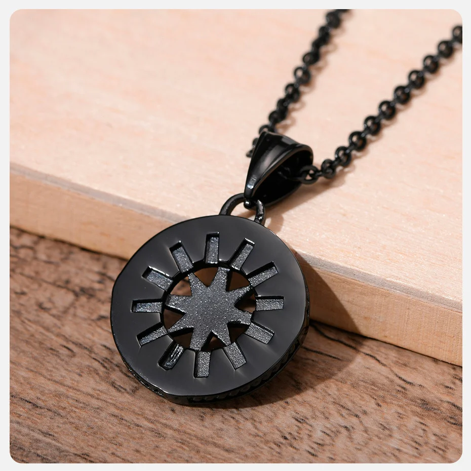 Der Anhänger ist in Silber, Schwarz oder Gold erhältlich und hängt an einer robusten, farbbeständigen Edelstahlkette. Kratzfest, rostfrei und angenehm zu tragen – für einen maskulinen Look mit Bedeutung.