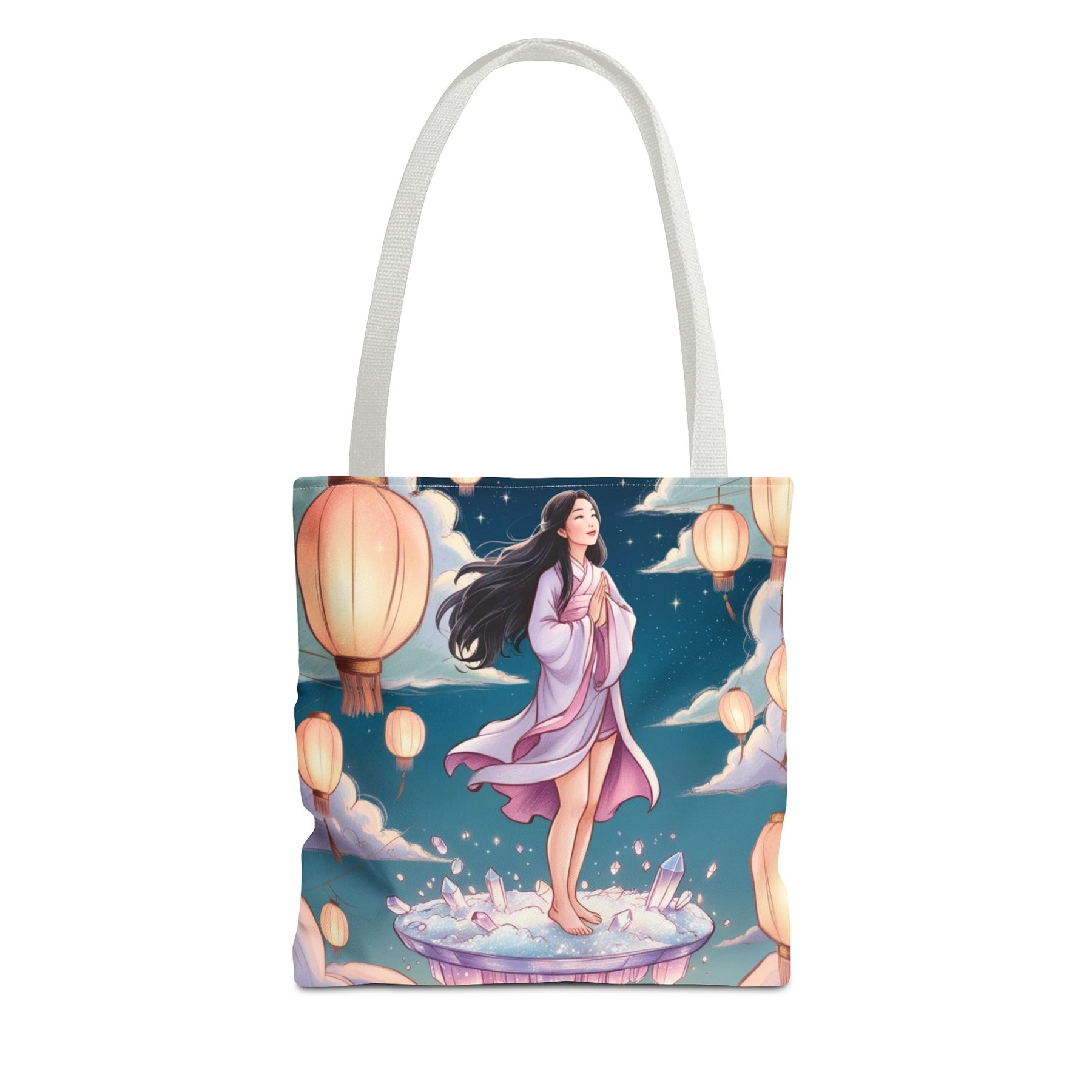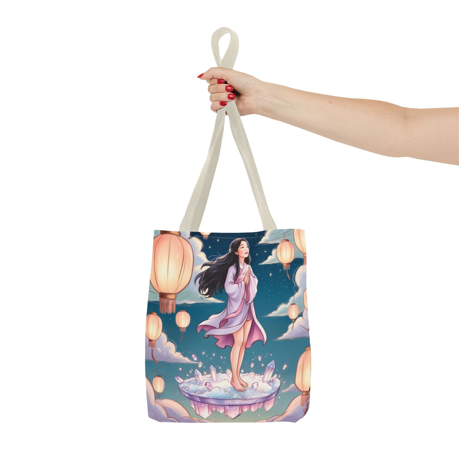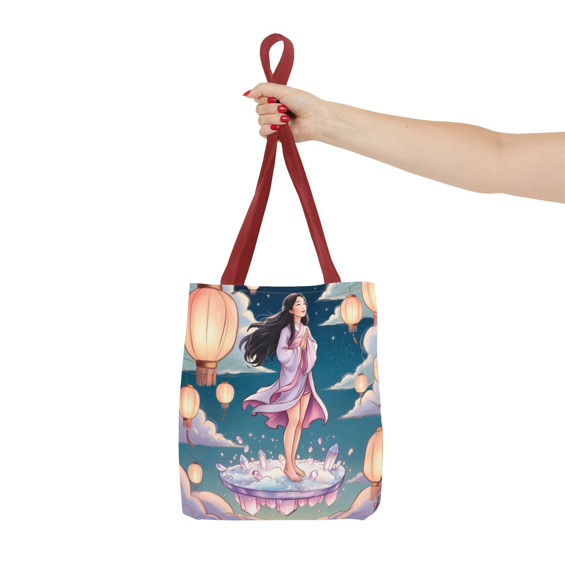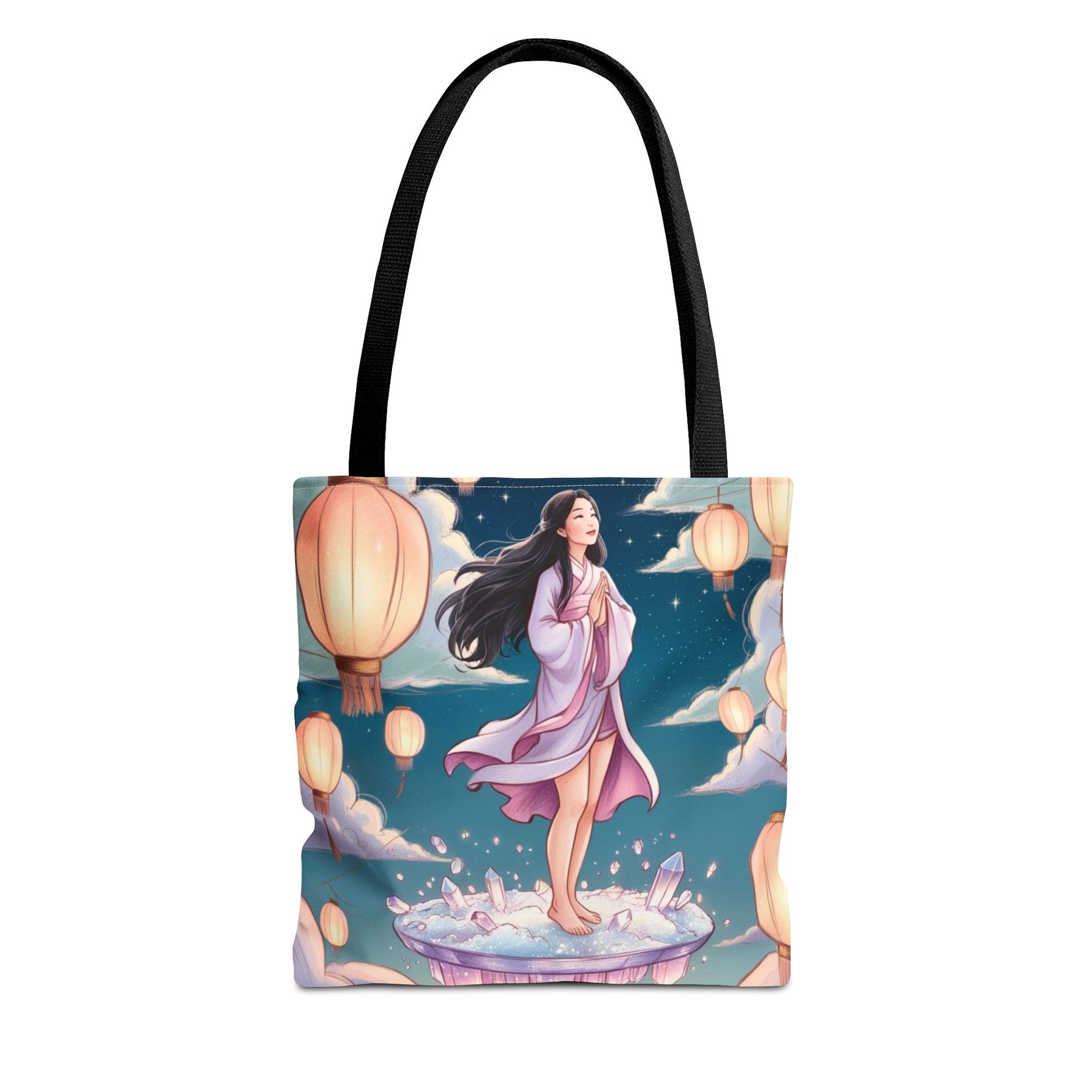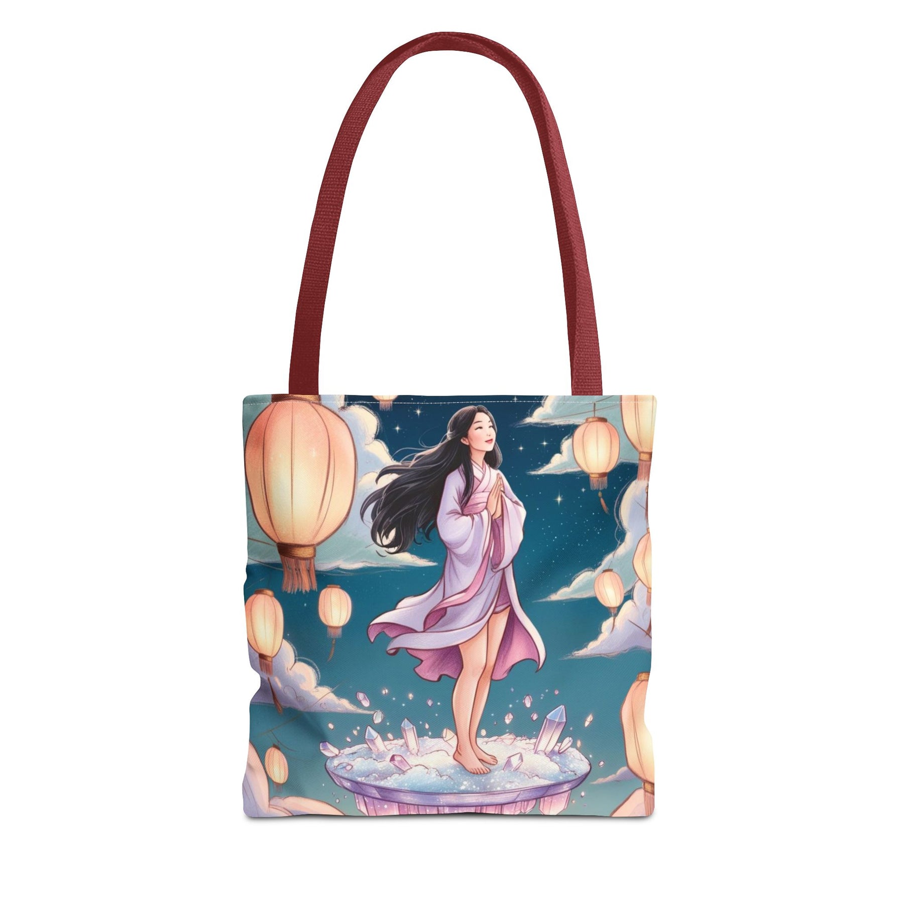 Erlebe Magie zum Mitnehmen – mit dieser atemberaubenden Tragetasche, die eine schwebende asiatische Schönheit in einem fließenden Kleid zeigt, elegant thronend auf einer funkelnden Kristallwolke, umgeben von schwebenden Laternen. Dieses einzigartige Design strahlt künstlerische Tiefe, mystische Ruhe und kulturelle Eleganz aus – perfekt für alle, die das Besondere lieben. Ob beim Einkaufen, unterwegs oder als stilvolles Accessoire – diese Tasche verleiht deinem Alltag einen Hauch von fernöstlicher Poesie und Traumwelt. Produktmerkmale: Größe: ca. 33 × 33 cm – ideal für Alltag, Einkäufe oder leichte Reisen Material: 100 % robuster Polyester – langlebig und formstabil Verstärkte Nähte: Besonders stabile Henkel dank verstärkter Verarbeitung Nahtlose Optik: Fadenfarbe auf das Design abgestimmt für ein harmonisches Gesamtbild Geräumiges Innenleben: Boxed Corners für extra Platz und besseren Stand Pflegehinweise: Bitte Tasche vor der Reinigung vollständig entleeren. Sichtbare Flecken mit Fleckenentferner vorbehandeln. Anschließend mit warmem Wasser und Waschmittel sowie einem weichen Tuch oder einer Bürste sanft reinigen. Lufttrocknen lassen.