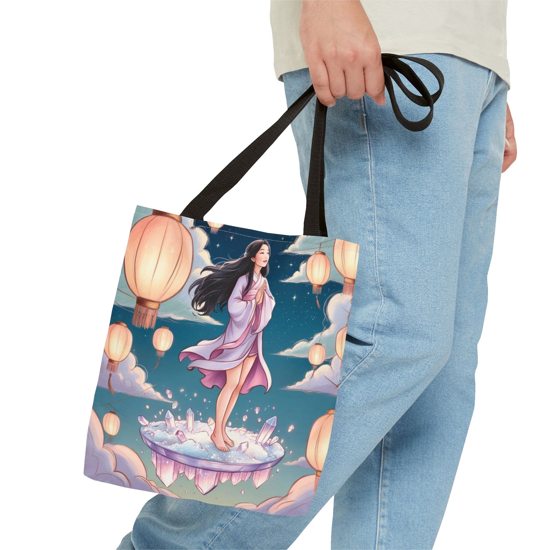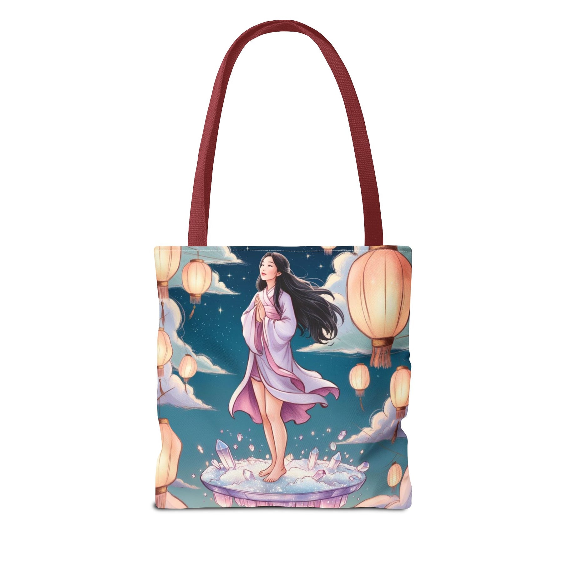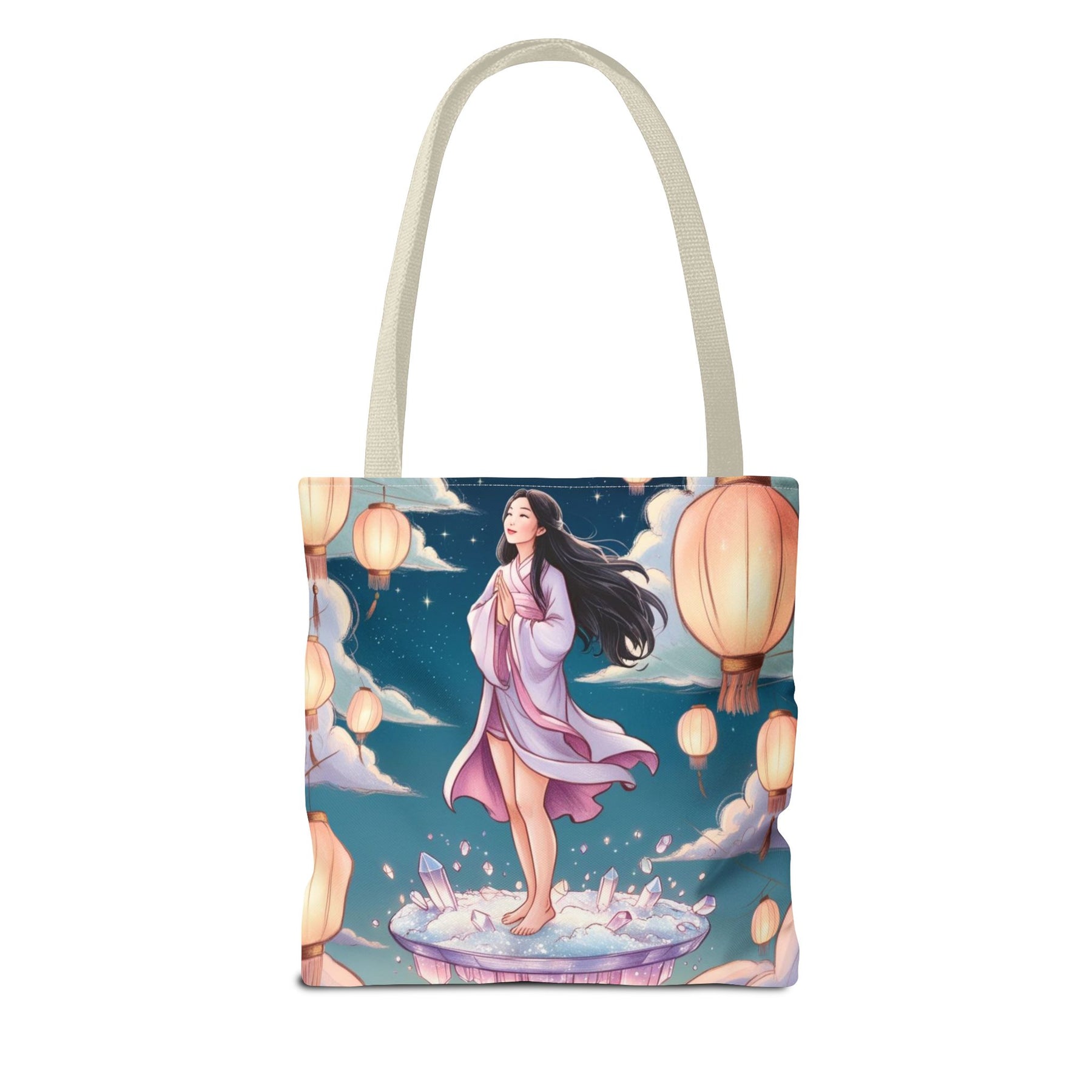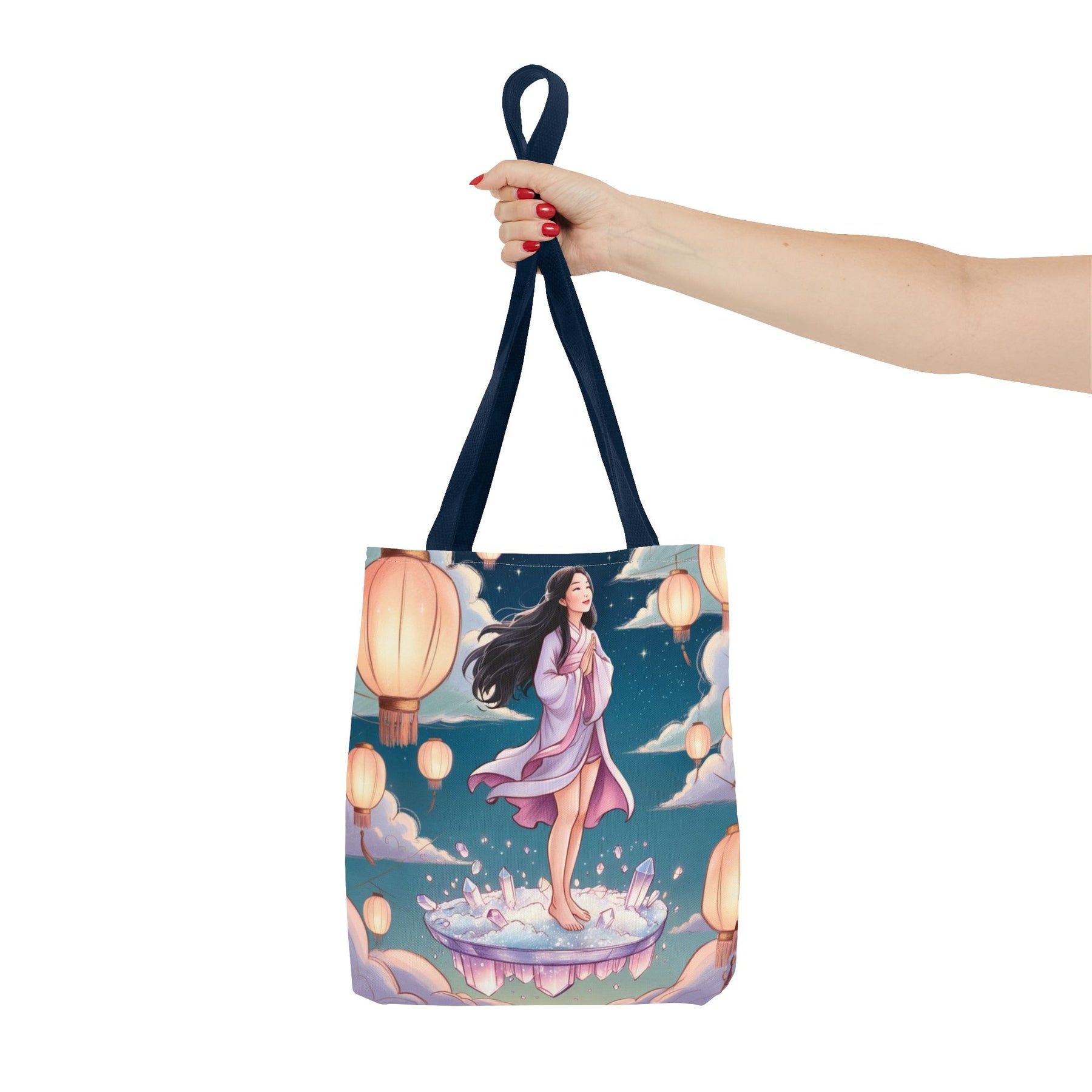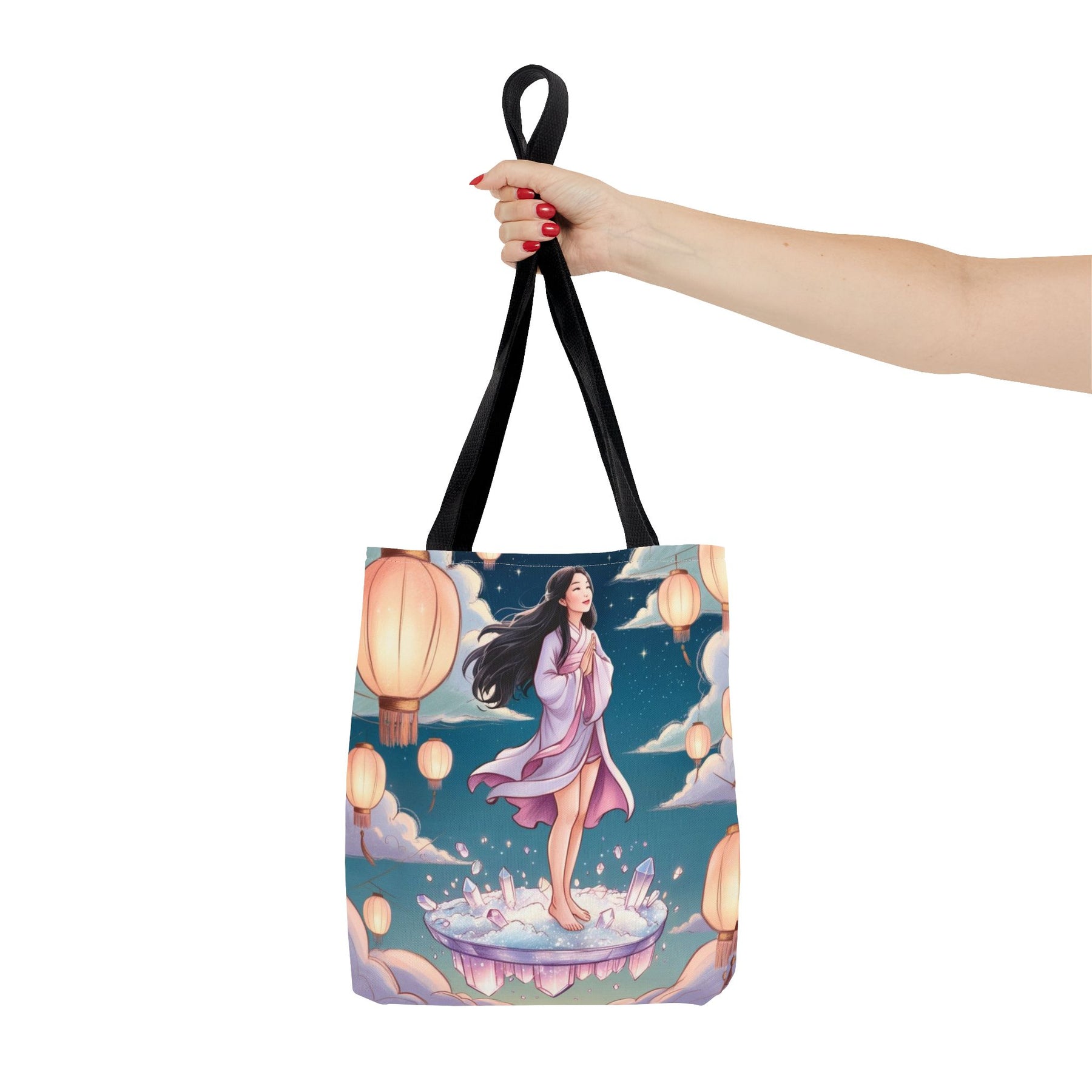 Erlebe Magie zum Mitnehmen – mit dieser atemberaubenden Tragetasche, die eine schwebende asiatische Schönheit in einem fließenden Kleid zeigt, elegant thronend auf einer funkelnden Kristallwolke, umgeben von schwebenden Laternen. Dieses einzigartige Design strahlt künstlerische Tiefe, mystische Ruhe und kulturelle Eleganz aus – perfekt für alle, die das Besondere lieben. Ob beim Einkaufen, unterwegs oder als stilvolles Accessoire – diese Tasche verleiht deinem Alltag einen Hauch von fernöstlicher Poesie und Traumwelt. Produktmerkmale: Größe: ca. 33 × 33 cm – ideal für Alltag, Einkäufe oder leichte Reisen Material: 100 % robuster Polyester – langlebig und formstabil Verstärkte Nähte: Besonders stabile Henkel dank verstärkter Verarbeitung Nahtlose Optik: Fadenfarbe auf das Design abgestimmt für ein harmonisches Gesamtbild Geräumiges Innenleben: Boxed Corners für extra Platz und besseren Stand Pflegehinweise: Bitte Tasche vor der Reinigung vollständig entleeren. Sichtbare Flecken mit Fleckenentferner vorbehandeln. Anschließend mit warmem Wasser und Waschmittel sowie einem weichen Tuch oder einer Bürste sanft reinigen. Lufttrocknen lassen.