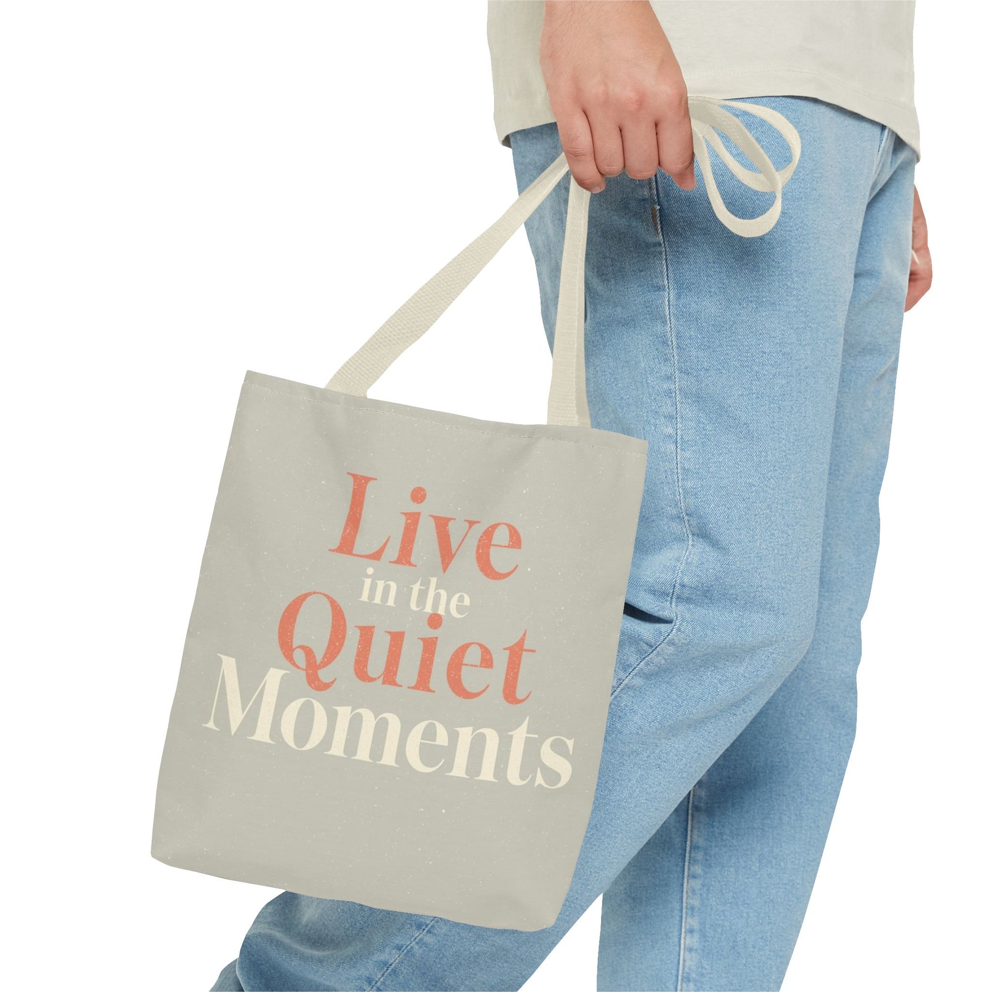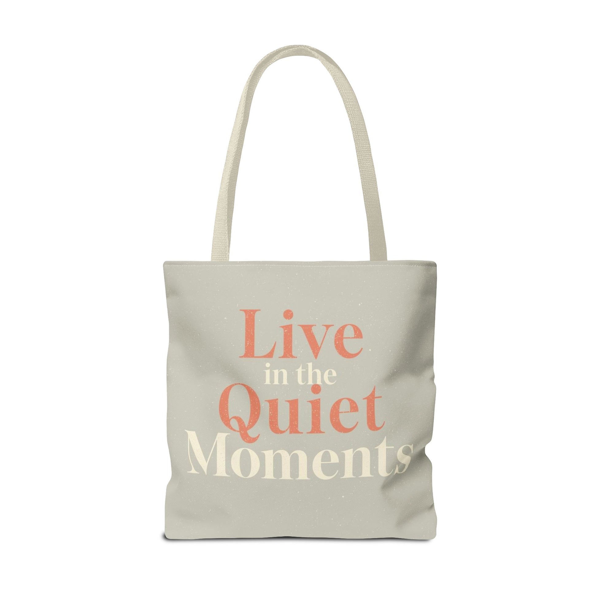 „Lebe in den stillen Momenten“ – diese Tasche erinnert dich daran, im Trubel des Alltags kurz zu stehenzubleiben und durchzuatmen. Sie ist leicht, aber stabil, formschön und praktisch – eine Begleiterin für alle, die Ruhe, Stil und Funktion schätzen.