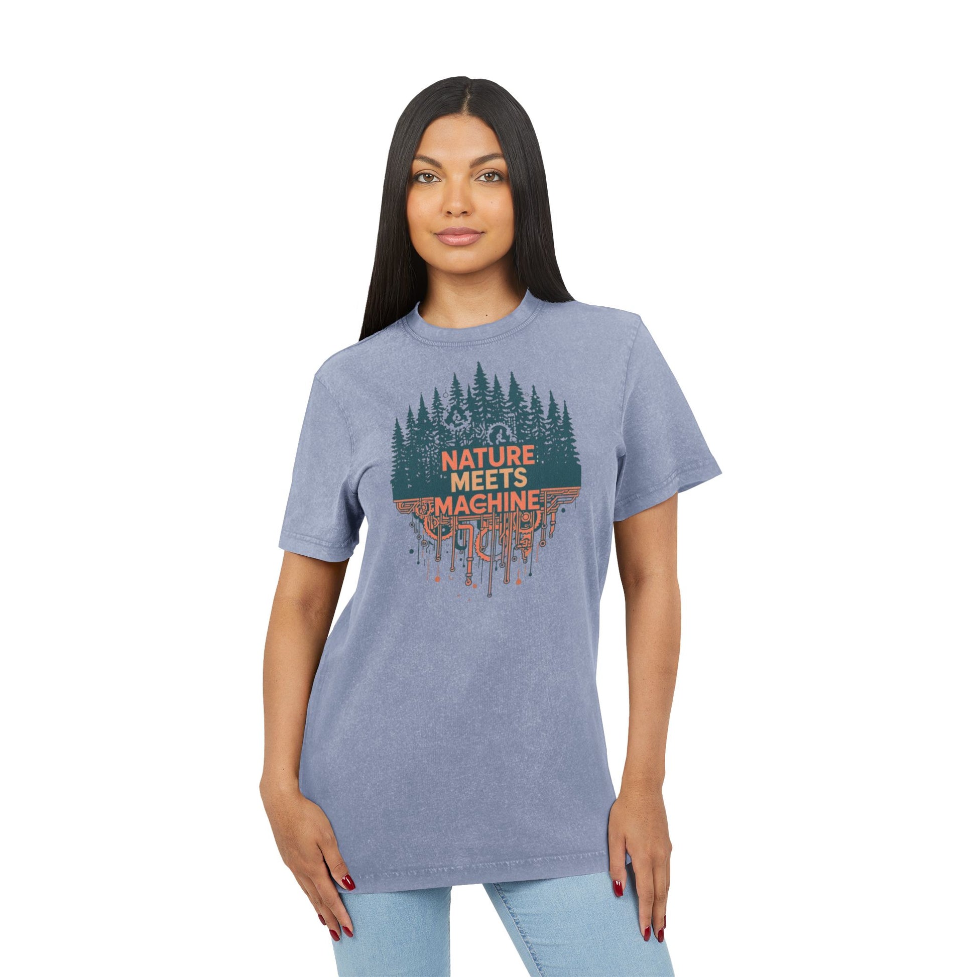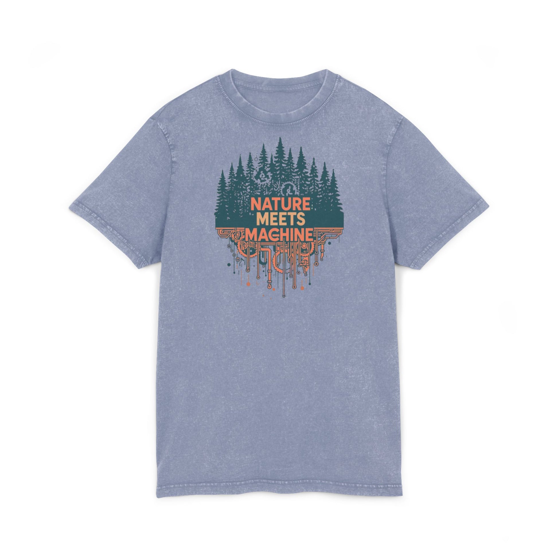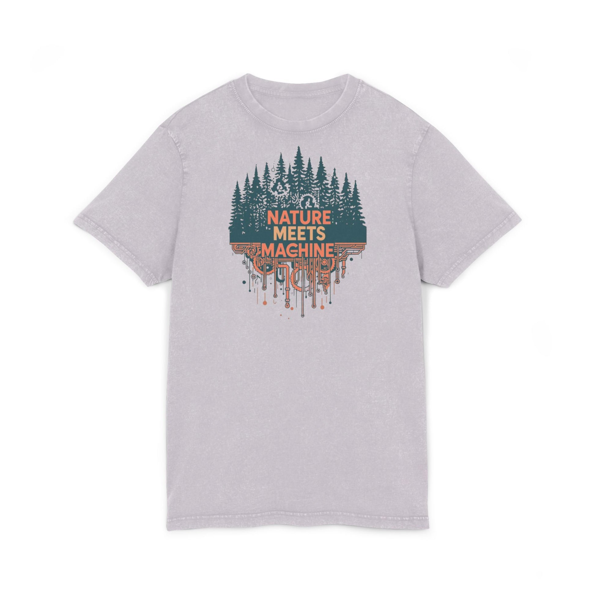 Dieses Nature Meets Machine T-Shirt symbolisiert die Balance zwischen moderner Technologie und der Kraft der Natur.