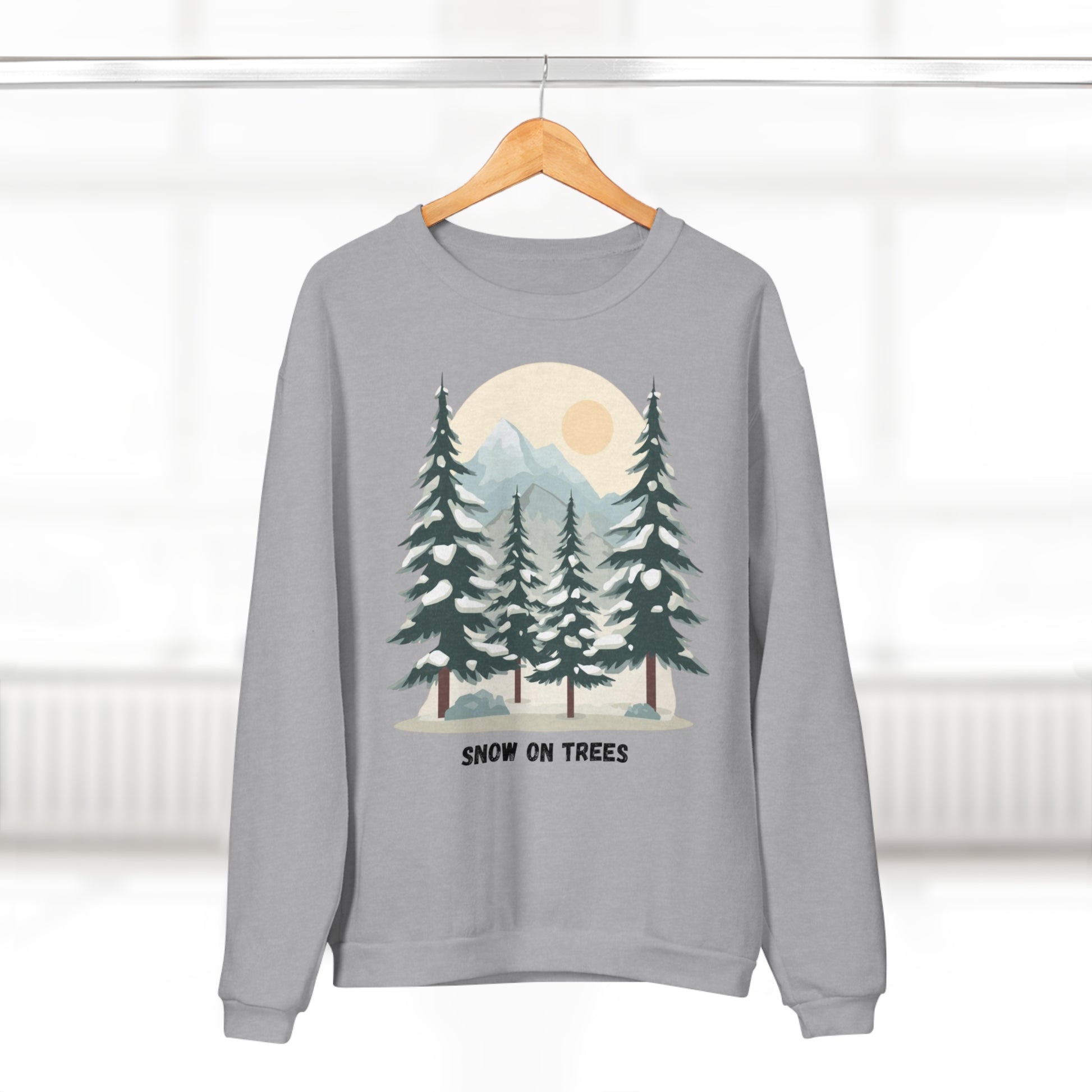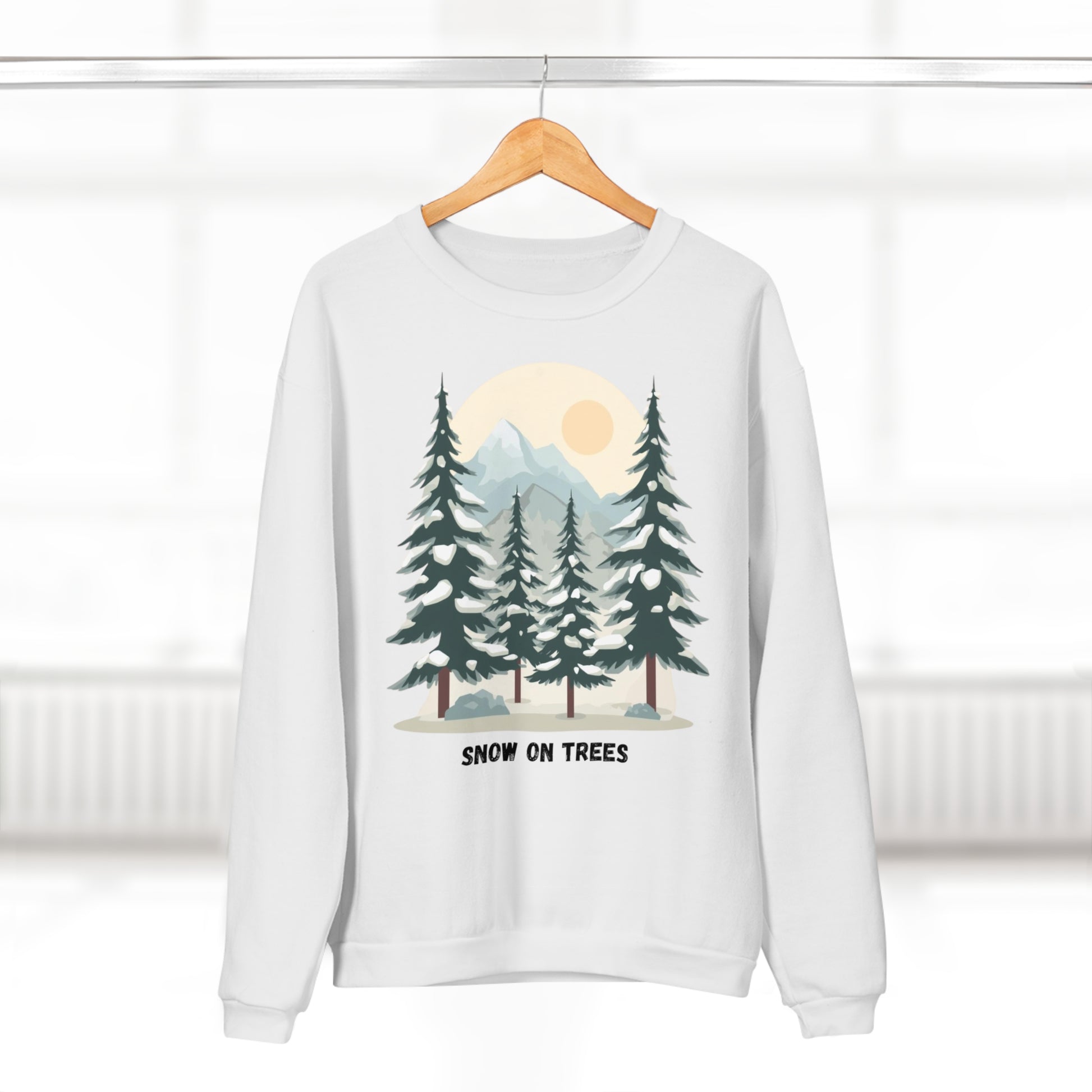 Snowy Trees Unisex Crew Neck Sweatshirt - Cozy Nature Vibe, Perfect for Outdoor Lovers, Gift for Holidays, Casual Wear, Layering
