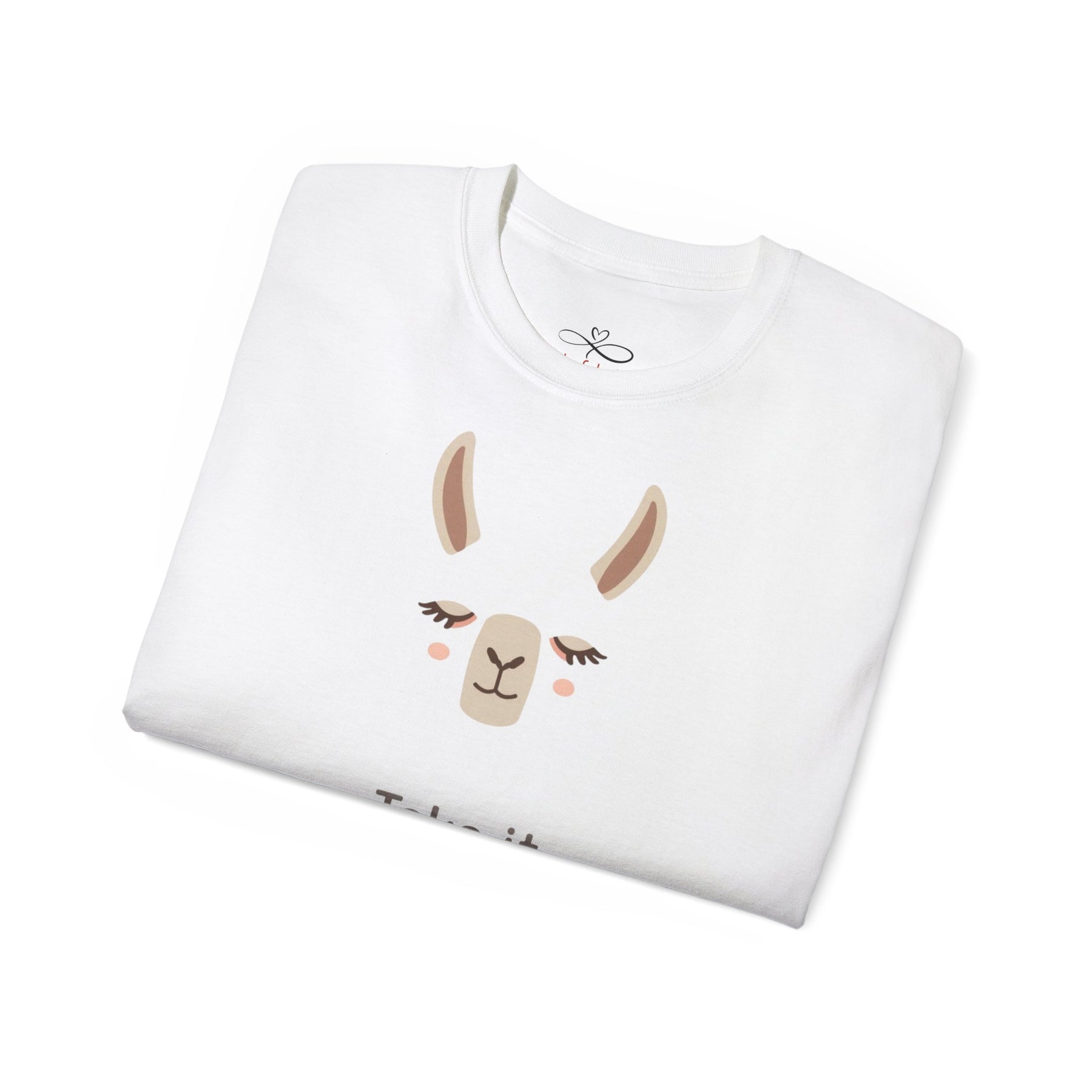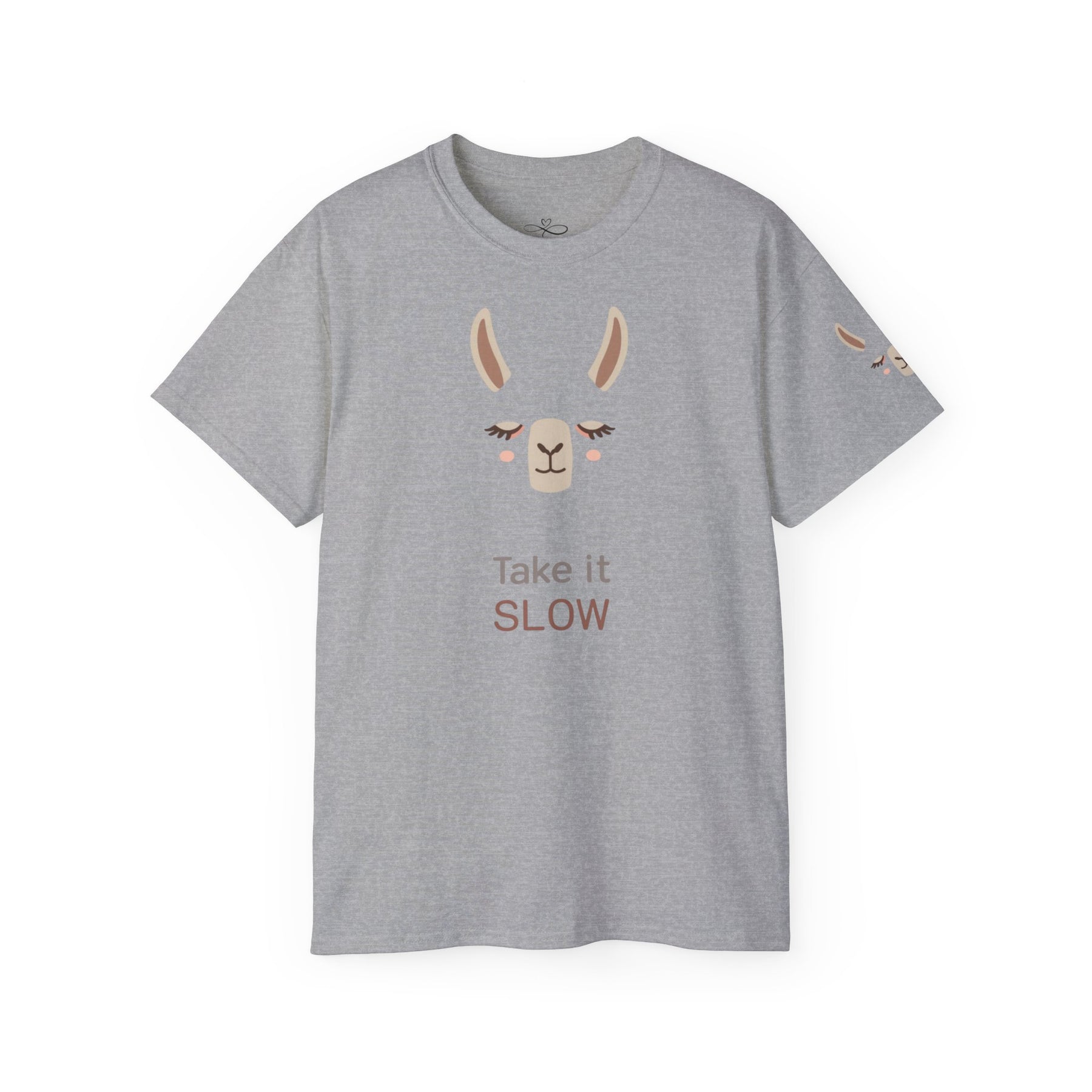 Embrace a relaxed lifestyle with our Unisex Ultra Cotton Tee! Featuring an endearing llama design with the phrase "Take it SLOW," this tee offers a lighthearted vibe perfect for casual outings or cozy days at home. Made from eco-friendly cotton, it guarantees comfort and durability while effortlessly fitting into your everyday wardrobe. Ideal for animal lovers, laid-back individuals, and anyone looking to make a stylish statement without compromising on comfort. This versatile shirt is perfect for birthdays, casual get-togethers, or simply as a thoughtful gift to remind loved ones to take it easy!